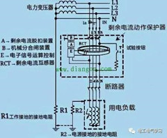 當保護器的輸出線路有剩余電流或其它接地漏電故障時,由于剩余電流的存在,迫使這個剩余電流通過RCT一次側檢測的三相負荷電流,其中包括工作零線N的電流的矢量和不再為0,打破了平衡,此時,基爾霍夫方程兩邊為不等于≠即ΣI=IL1+lL2+IL3+ILN0,從而剩余電流互感器RCT的磁通量公式也被打破平衡≠。即φL1+φL2+φL3+φLN0 此時RCT將檢測出的信號送入E→電子信號放大運算器中,由剩余電流脫扣器來執行命令,進行分閘保護。